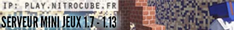Bienvenue sur notre serveur Nitrocube, un serveur plein de mini jeux avec classement, VIP et event ! Il dispose de nombreux jeux, une boussole de téléportation vous permet de jouer à de nombreux jeux originaux : - Le Rush et le Divided Together - Le PVP SOUPE avec KITS - Le Murder - Le OITC | OITB | APOCALYPSE - Le Hide N Seek - Le Sky Wars - Des jumps et labyrinthes Et bien d'autres surprises à découvrir ! Connexion en 1.7 | 1.8 | 1.9 | 1.11| 1.10 | 1.12 et 1.13 !!!