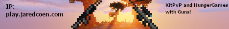2v2 TOURNAMENT RSVP NOW Think you have what it takes to win in PvP? Join the 2v2 Tournament for just 5 dollars Winner gets the entire prize pool and the VIP rank RSVP now at: https://store.jaredcoen.com/rsvp Limited spots available, bring your teammate and sign up KitPvP with Guns and More Experience KitPvP like never before with guns, grappling hooks, boost pads, parachutes, canned food, killstreak rewards, and much more Type /games to see all available modes including Hunger Games GunGame Team Deathmatch Duels and more coming soon