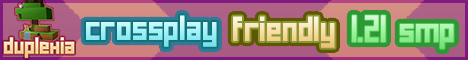 This is Duplexia, a small survival server, with some customized survival aspects. From custom enchantments, ranks, full on land customization, and custom world generation, we hope you find your home here with us. Duplexia gotten its start back in Oct, 14, 2018 as Atheran, and sadly has been down due to the owner not being be available for the server. We promise moving forward, no matter what, the server will stay online, and talk with the community on new or returning features. We're a non pay to win server. We only accept donations, in the aspect that you will only receive a prefix in chat, and a discord role. Soft Launch Currently we are launching the server, August 15th,2024. This is a soft launch, as all features are not released yet to everyone. This is the time to give us as much feed back as possible, and continue to do so. This server is the owners, its our communities. Help us make Duplexia how you want it!