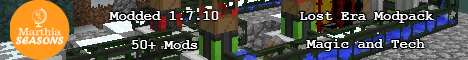 From the collapse of the Marthian Empire, comes the newest iteration of a seven year old community… MARTHIA SEASONS Marthia Seasons is a modded Java-only server. The homeland lacks a united government, and mysterious portals have opened to an alien world. New opportunities are emerging everywhere. Will YOU take advantage? Build the city on a shining hill, industrialize the modded world with intricate machinery or consult the dark magic and bring the mystical world under your command. The choices are endless! Marthia Seasons is a new server designed for change. Our first season has started, a Java-only modded world using the Lost Era modpack for 1.7.10. Several new and original countries have formed, but there is plenty of room for more!