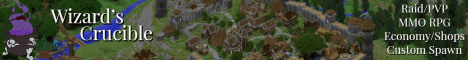 Delve into the lost magics of Wizard’s Crucible to uncover secrets and gain an edge over your opponents. Nothing is sacred In this Raid/PVP server, where only the most cunning and determined Magi are able to forge their story in the Wizards Crucible. Follow the path of Nature and discover the secrets of Botany or explore the lost treasures scattered across the overworld and unearth hidden troves seek power within the roots of this dimension, or venture to others! Seek power in the depths of Hell, will you sell your soul to gain great power and control the realm? Perhaps you prefer forbidden magics, that even the Demons have left untouched, sacrificing the life-force of yourself and those around you to fuel your ambitions. Prefer a more direct approach? Forge your own equipment to fend off challenging boss monsters. Those who take to hiding their presence may live in peace, or sneak up on you when you least expect it. Forge your tale in the Wizard’s Crucible alone or as a clan! With a dedicated server with features such as a full economy, auction house, jobs, a full suite of commands, events, and much more! Test your mettle in the lag free, claimless, and unique experience that is Wizard’s Crucible!