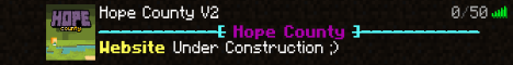 Welcome to Hope County! Hope County is a survival server on 1.16.4 Players have access to do the following things: /shop (to buy and sell stuff) /sethome (to set homes) /rtp (teleport to a random location) /tpa, /tpr (request teleport to players) And to claim land with a golden shovel. Can't wait to see you join too!