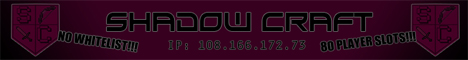 ShadowCraft is a factions/PVP Server that just started and needs players. We are hosted on a dedicated server with no lag so you can have fun without any interruptions. Our server contains a nice spawn, an admin shop, as well as a user market, mob arena, and many more. Some of those are all still in development but, join and get a head start against the rest! Join now to experience the fun!