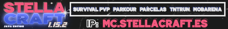 StellaCraft es un servidor survival con protecciones, un pack de texturas custom, encantamientos especiales y muchas cosas mas! Unite! Te estamos esperando <3