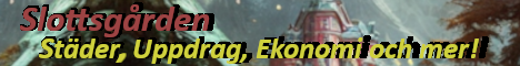 IP: Slottsgården.se/Slottgarden.eu Välkommen till Sveriges nya hemmaplan, Slottsgården! Vi erbjuder allt det där du längtar efter.. *Städer - Skapa städer och bygg ut den med dina vänner, kanske är det din som blir den största! *Uppdrag - Gör dagliga uppdrag och få belöningar, eller påbörja ett längre äventyr med nya vändningar... *Ekonomi - Ett fullskaligt ekonomisystem, där det kan vara du som sätter priserna. Alla är välkomna till Slottsgården, ses på servern. ENG ---------------------------------------------------------------------------------------------- Welcome to Sweden's new home ground, Slottsgården! We offer everything you long for.. *Cities - Create cities and expand it with your friends, maybe yours will be the biggest! *Quests - Do daily quests and get rewards, or embark on a longer adventure with new twists... *Economy - A full-scale economic system, where you can set the prices. Everyone is welcome to Slottsgården, see you on the server.